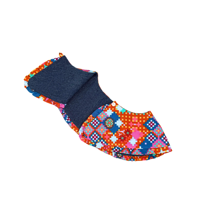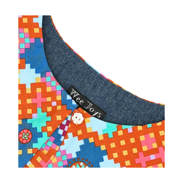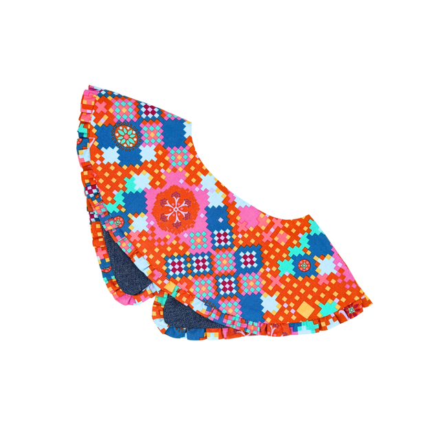 Crafted from quality cotton in a playful terracotta check, this ever-popular oversized collar features ruffle details for a fun and modern twist, with denim lining.