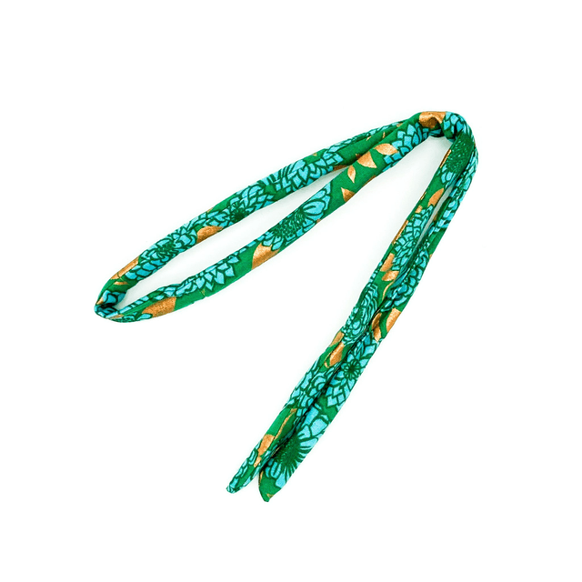 Flexible Skinny Hair Wrap - Green Metallic Gold Floral