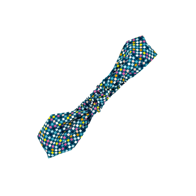 Knotted Elasticated Headband - Blue Check - Japanese Cotton