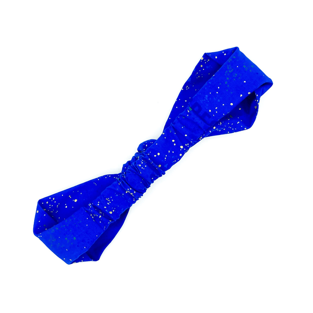 Knotted Elasticated Headband - Royal Blue Metallic Gold Speckle