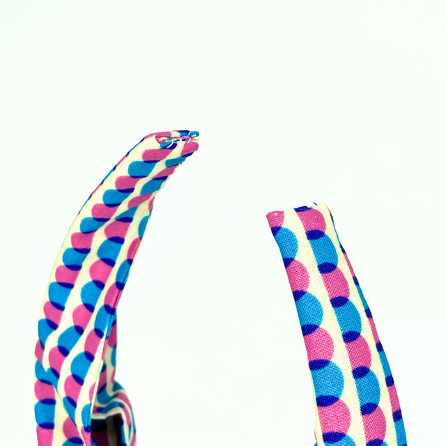 Colourful, comfortable, and handmade in Edinburgh. This Top Knot Alice Band is made with premium 100% cotton Japanese fabric in our Blue & Pink Scallop print.